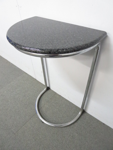 【エントランスに最適!】■受付用電話台 ■石目柄(ブラック系) ■半円型デザインのテレホンスタンド!- 川崎店