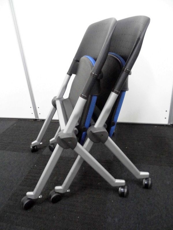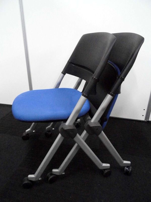 【ラスト2脚特価】オカムラ製|リータ|ブルー【ネスティング・スタッキングの2WAY収納】- 立川・八王子店