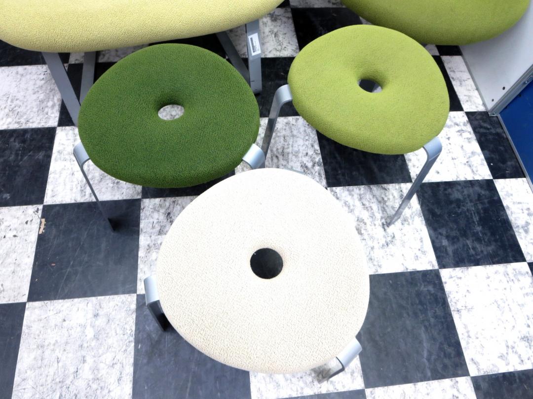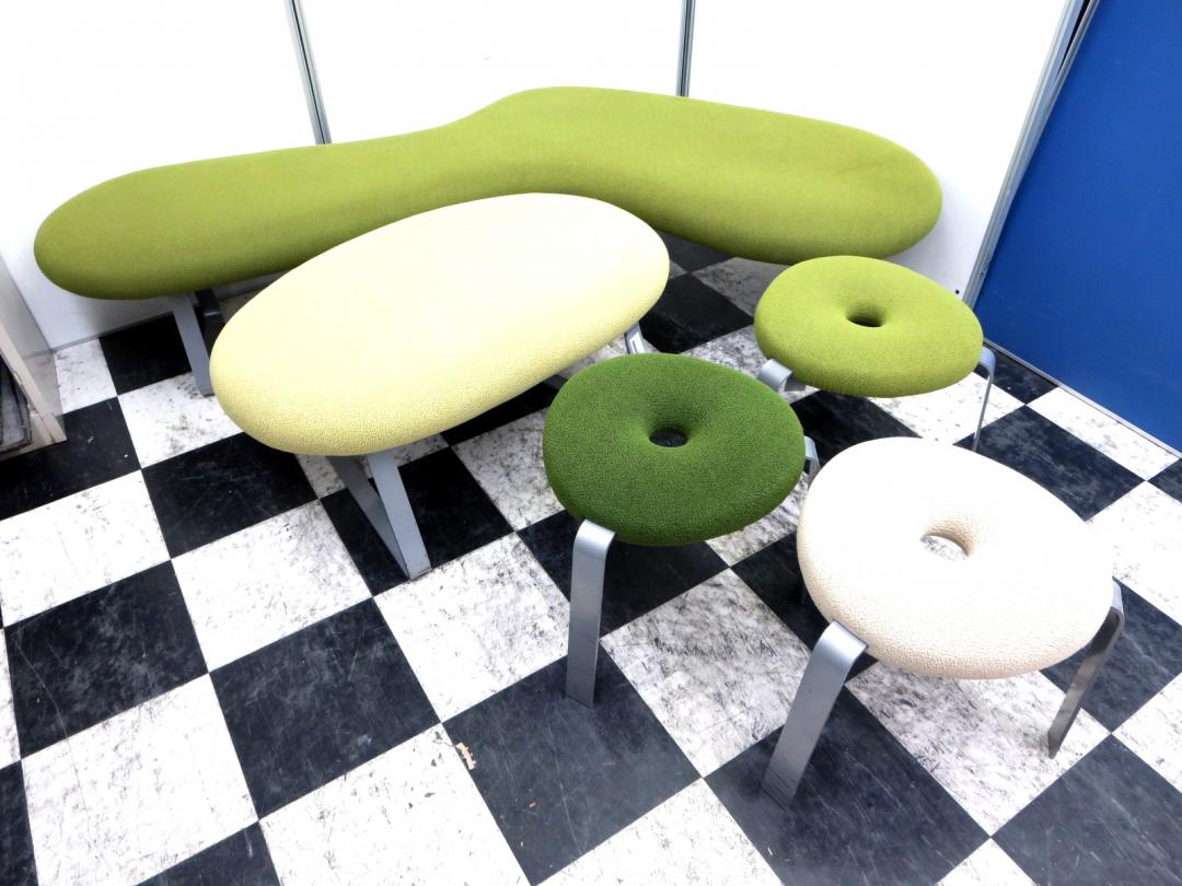 イトーキ製、落ち着いたグリーン色のベンチ・スツールセットのご紹介です。
