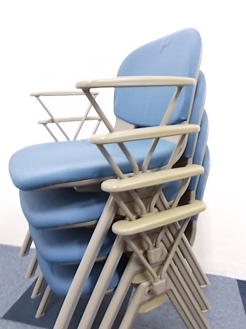 【専門業者によりクリーニング済み】【4脚セット商品】内田洋行製 スタッキングチェア 重ねられる為収納に便利!!- 在庫数