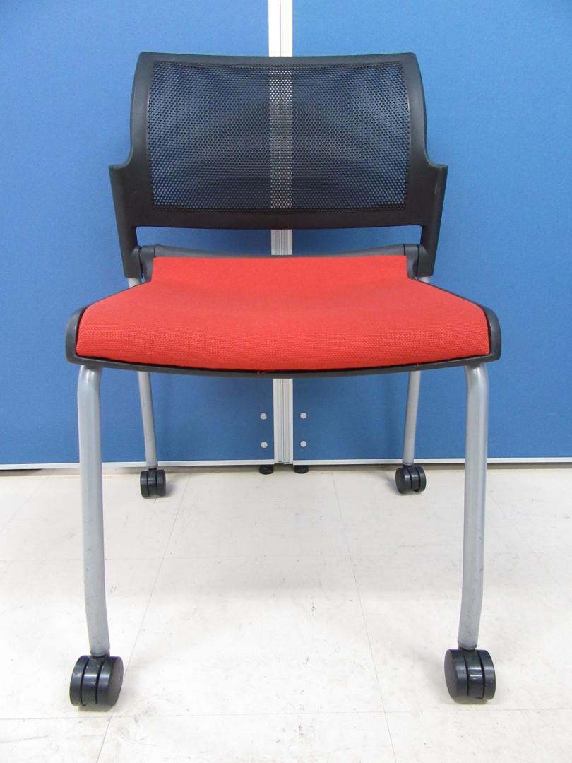 [4,000円⇒3,000円]内田洋行製 ミーティングチェア レッド■垂直・平行と2種類のスタック収納可能なチェア!!揃いでお探しのお客様必見です!![ネスタブル]- 足立・葛飾店
