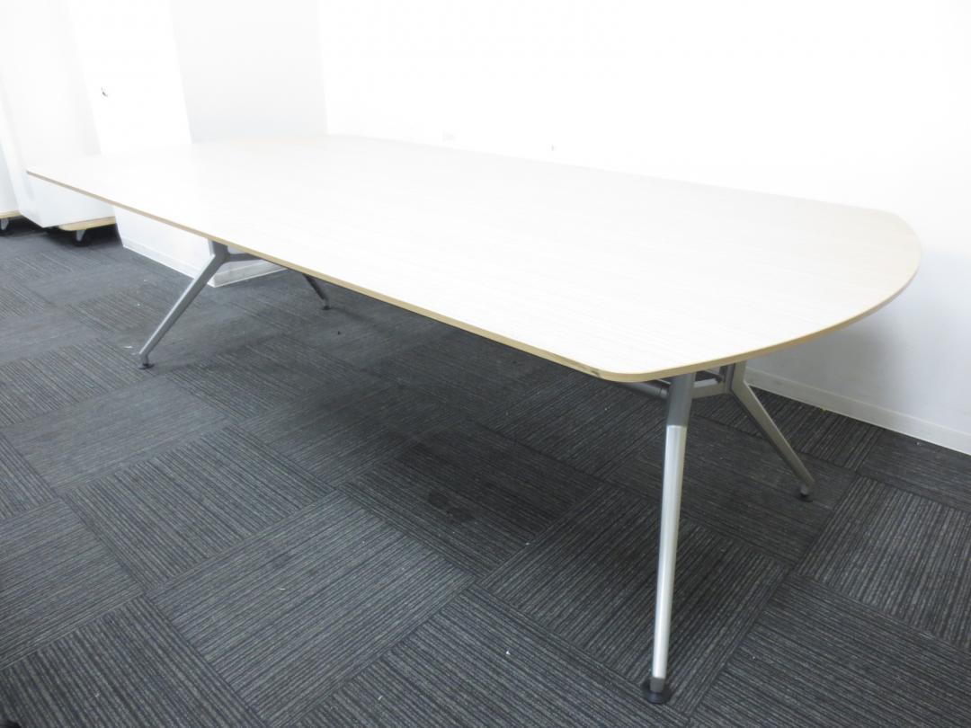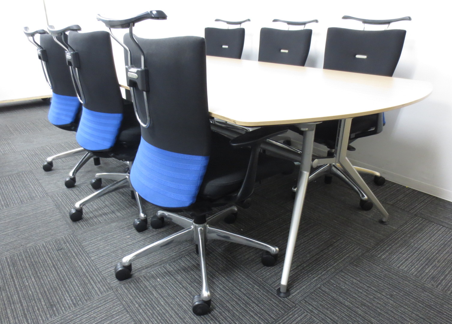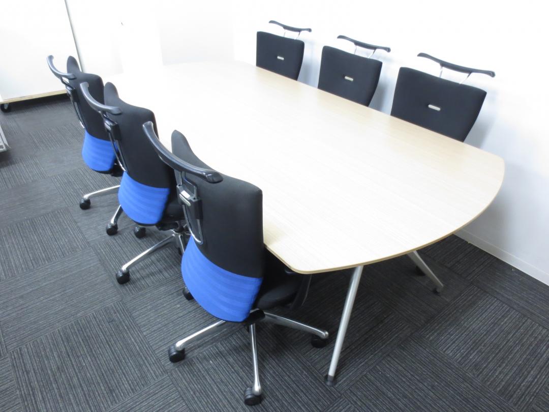 【限定!お得なセット品!】お洒落な会議室を作りませんか?珍しい舟形のミーティングテーブルです。早い者勝ちのナチュラル天板!【状態良好】- 春日部・越谷店