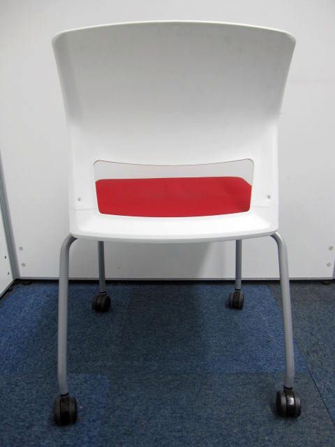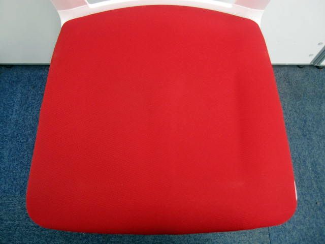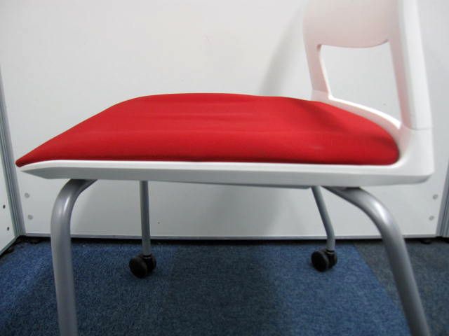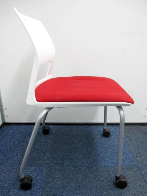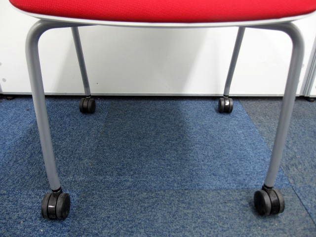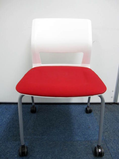 【しっかりクッションで座りやすい!】■コクヨ製 スタッキングチェア 座:レッド 背:ホワイト ■フローリングでも使いやすい!ゴムキャスタータイプ!
