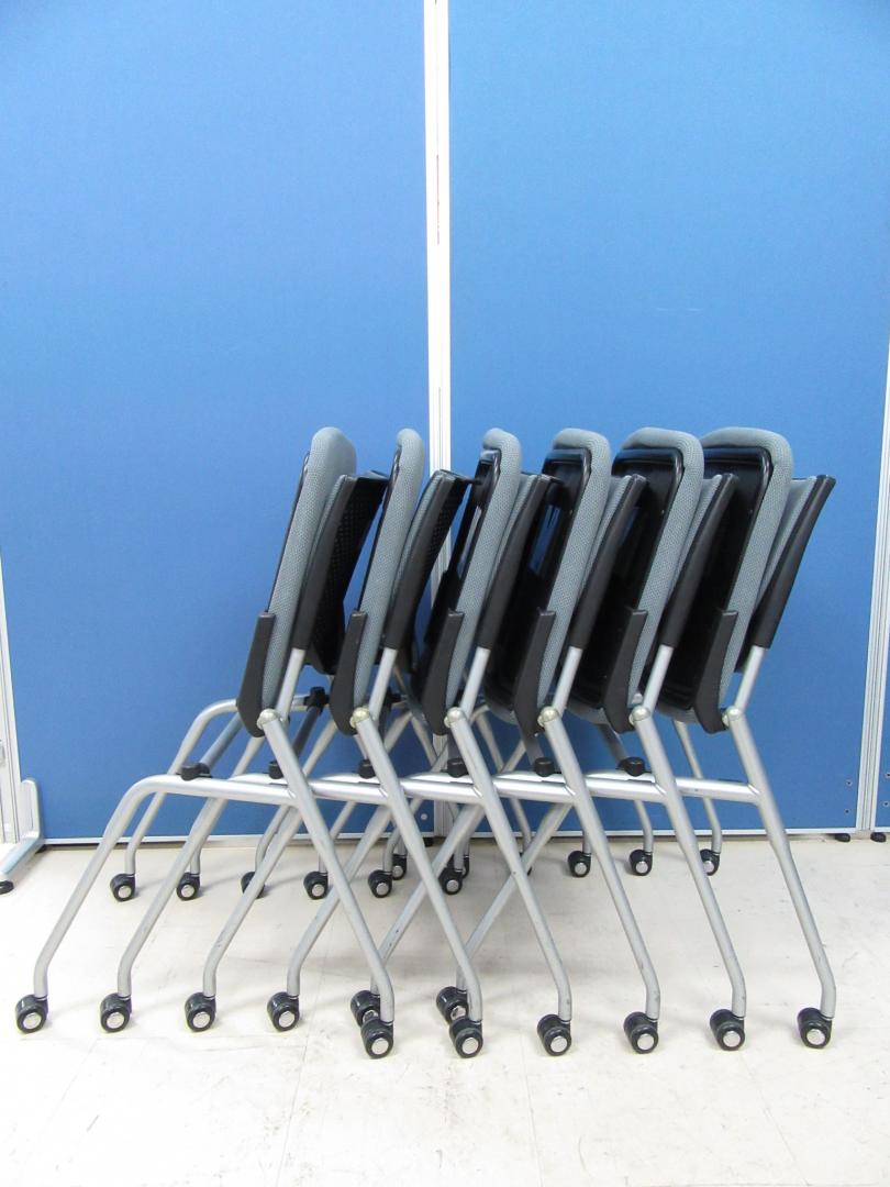 スペース空間を最大限に生かせる座面が跳ね上げ可能なネスティングチェア! ■オカムラ/プロスタック/グレー