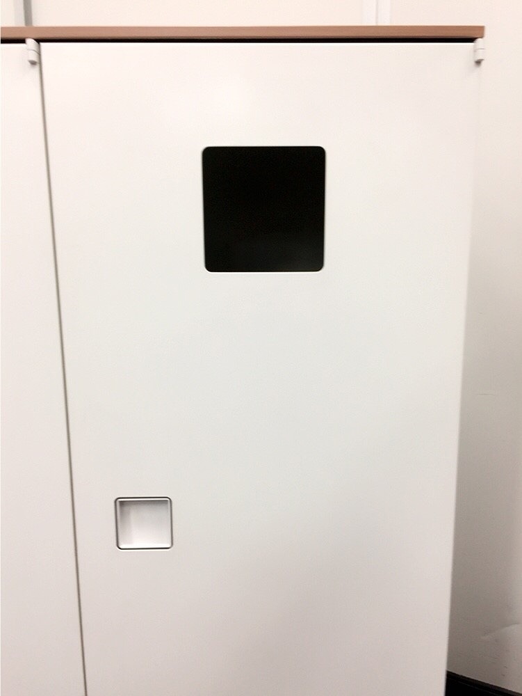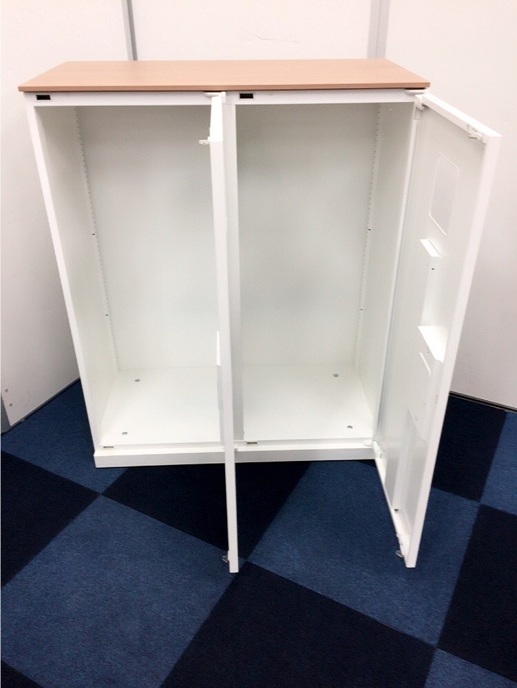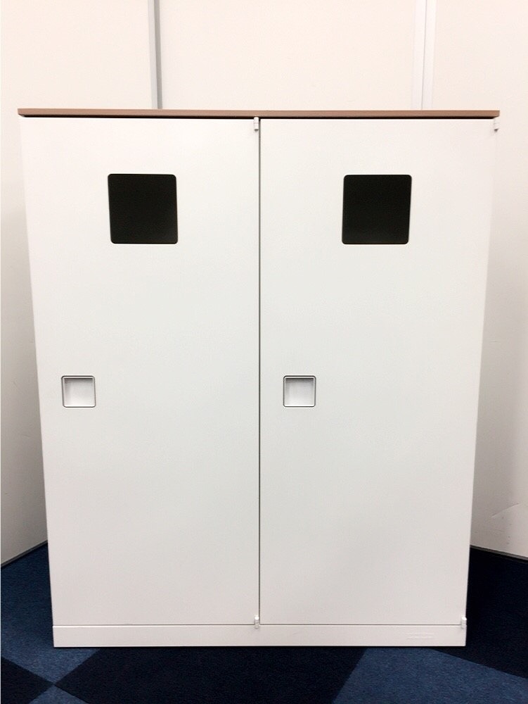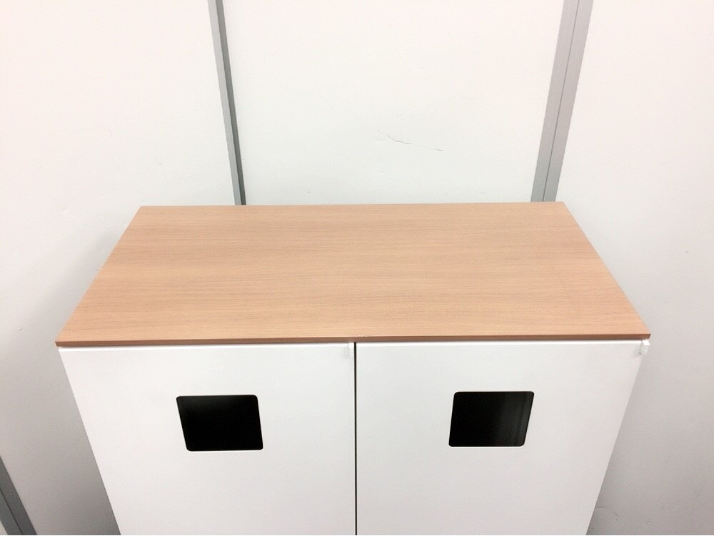【オシャレな天板付きのダストボックス!新オフィスなどいかがでしょうか!】オカムラ レクトライン 両開き ホワイト 《オフィスバスターズ福岡博多店は、福岡を拠点として、日本全国へ中古オフィス用品・オフィス家具を提供しております》