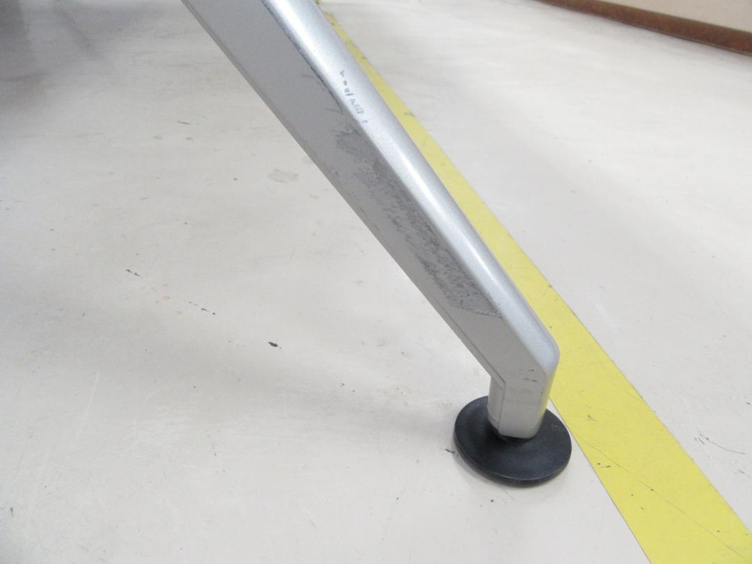 - 一部不具合あり天板歪み、アジャスター無し、キャスター使用不可ようなそのテーブルの本来の効用を果たすための機能以外の一部が使用不可な状態。(例、キャスターロッ ク機能使用不可、棚板無し等がある。)