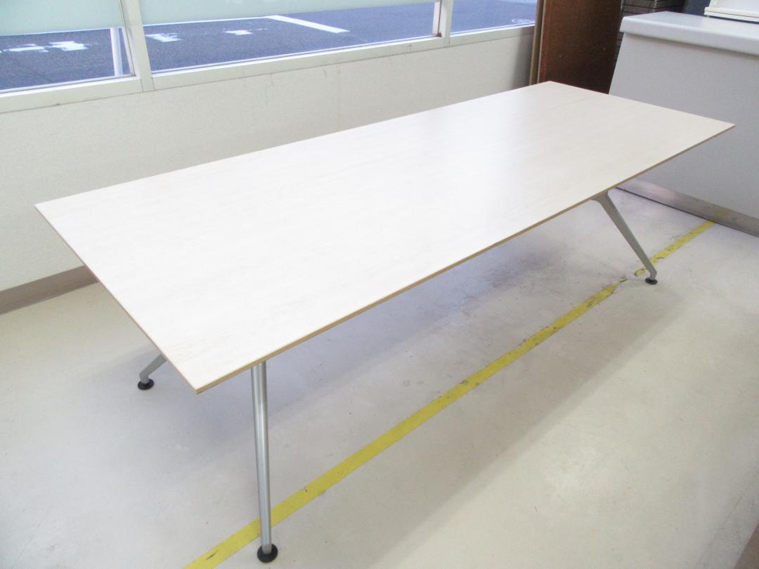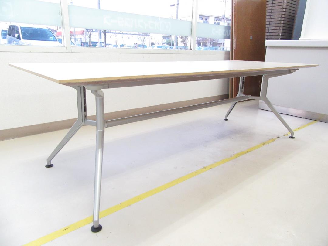 【会議室だけでなく休憩室でも!6~8名様対応・大型テーブル】■イトーキ(ITOKI) DDDシリーズ ミーティングテーブル 会議テーブル 幅2400×奥行900mm ■木目ナチュラル天板 脚シルバー色 オフィスバスターズ東大阪店