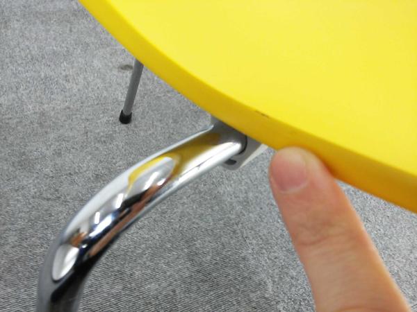 - かなり強い濃い黄ばみ・変色が商品全体にある。(例、座面・背もたれ、脚部等にある。)