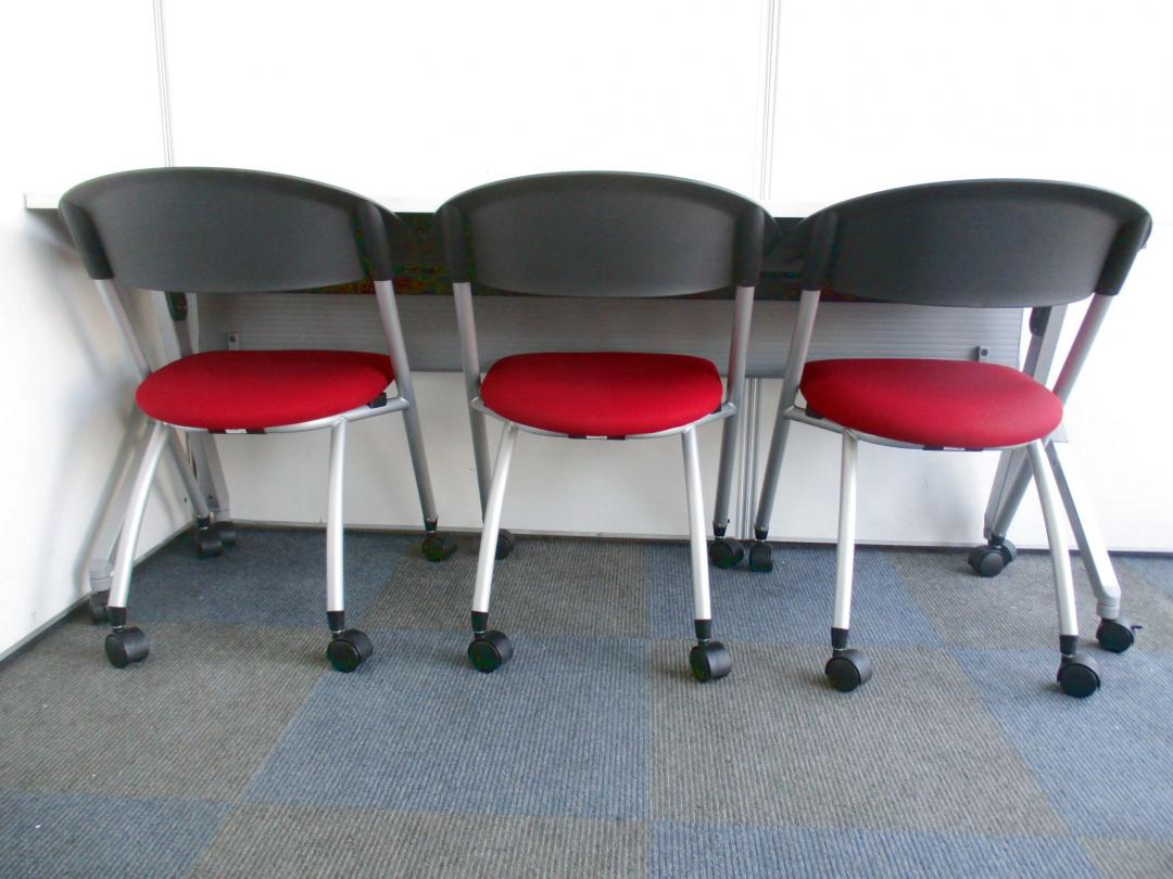 【テーブルとチェア3脚のお得なセットです!】キャスター付きで移動が楽にできます【会議、セミナーに大活躍!】- 千葉店