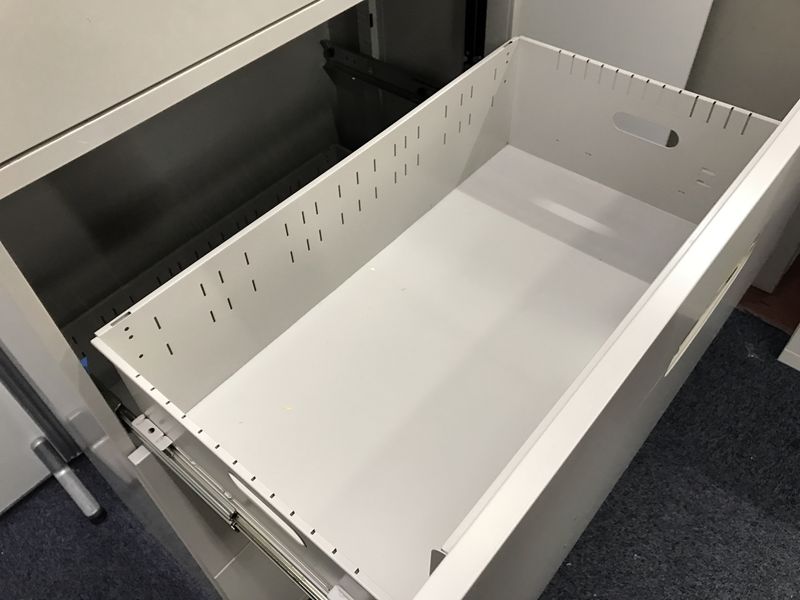 - 多数不具合あり引出の開閉不可、施錠不可、棚板無しといったその書庫の本来の効用を果たすための機能以外の多数が使用不可(例、扉、引出の開閉がしづらいなどがある。 )