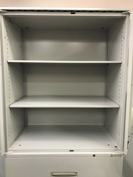 - 一部不具合ありそ引出の開閉不可、施錠不可、棚板無しといったの書庫の本来の効用を果たすための機能以外の一部が使用不可(例、扉、引出の開閉がしづらいなどがある。 )