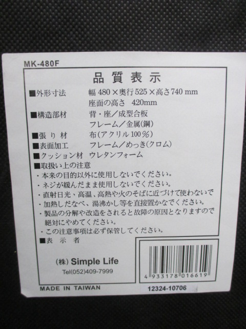 - 若干あり傷・破れ・ほつれ・へたり・しわが一部ある。(例、座面・背もたれ、脚部等にある。)
