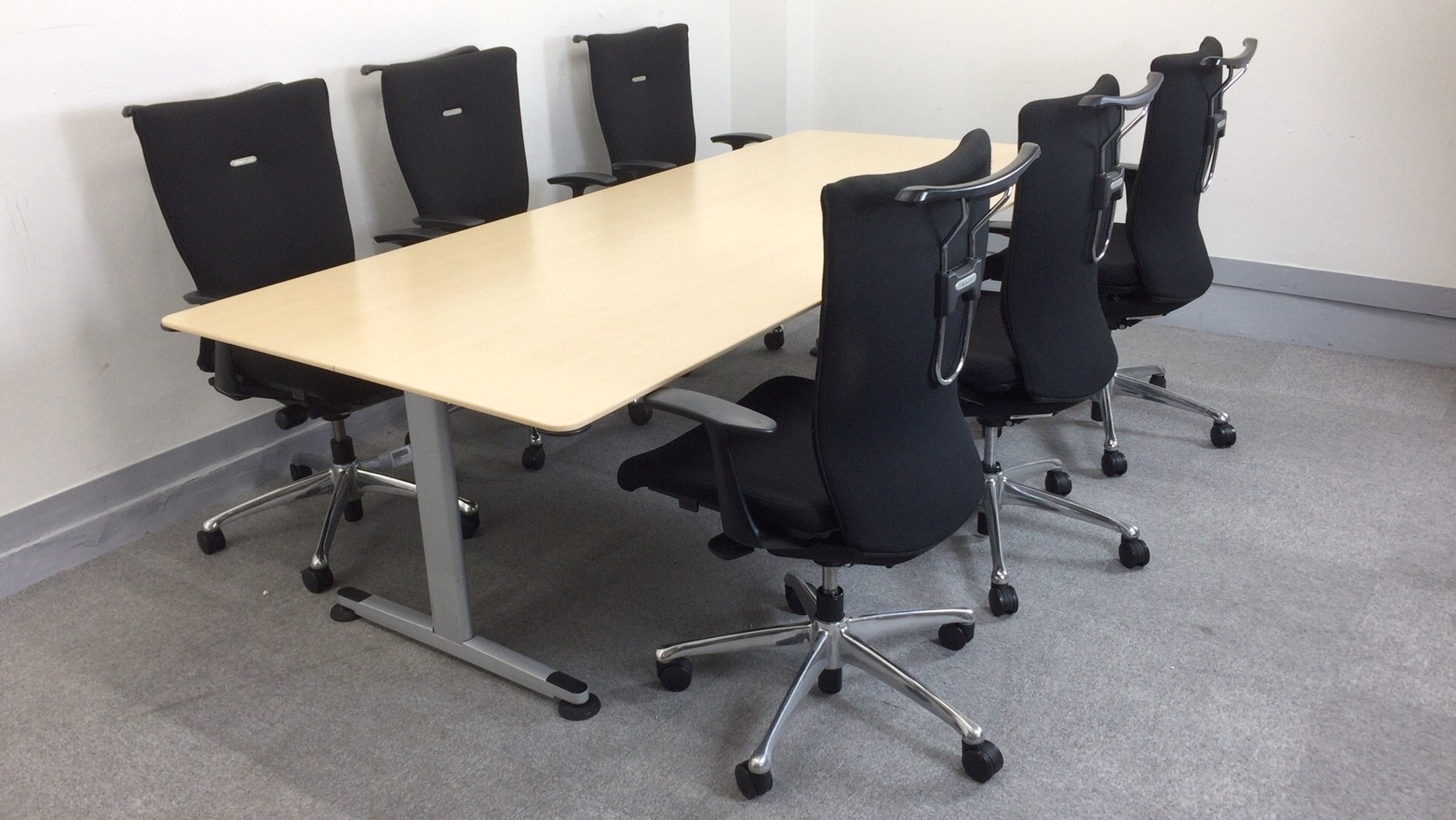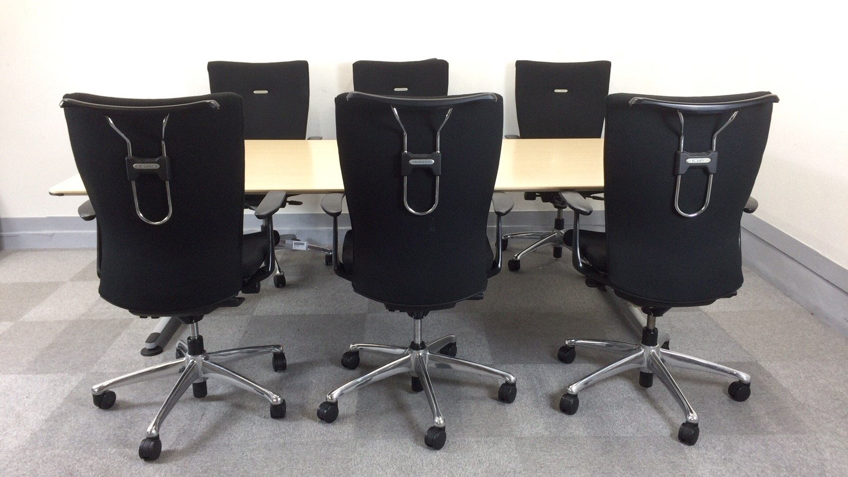 【KS】[通常購入価格180,000円→セット価格162,000円][6名様ミーティングセット]幅2400㎜ コクヨ ミーティングテーブル&オカムラ フィーゴチェア サイドファスナー 固定肘[新品M価総額80万円以上]- 茨城南店