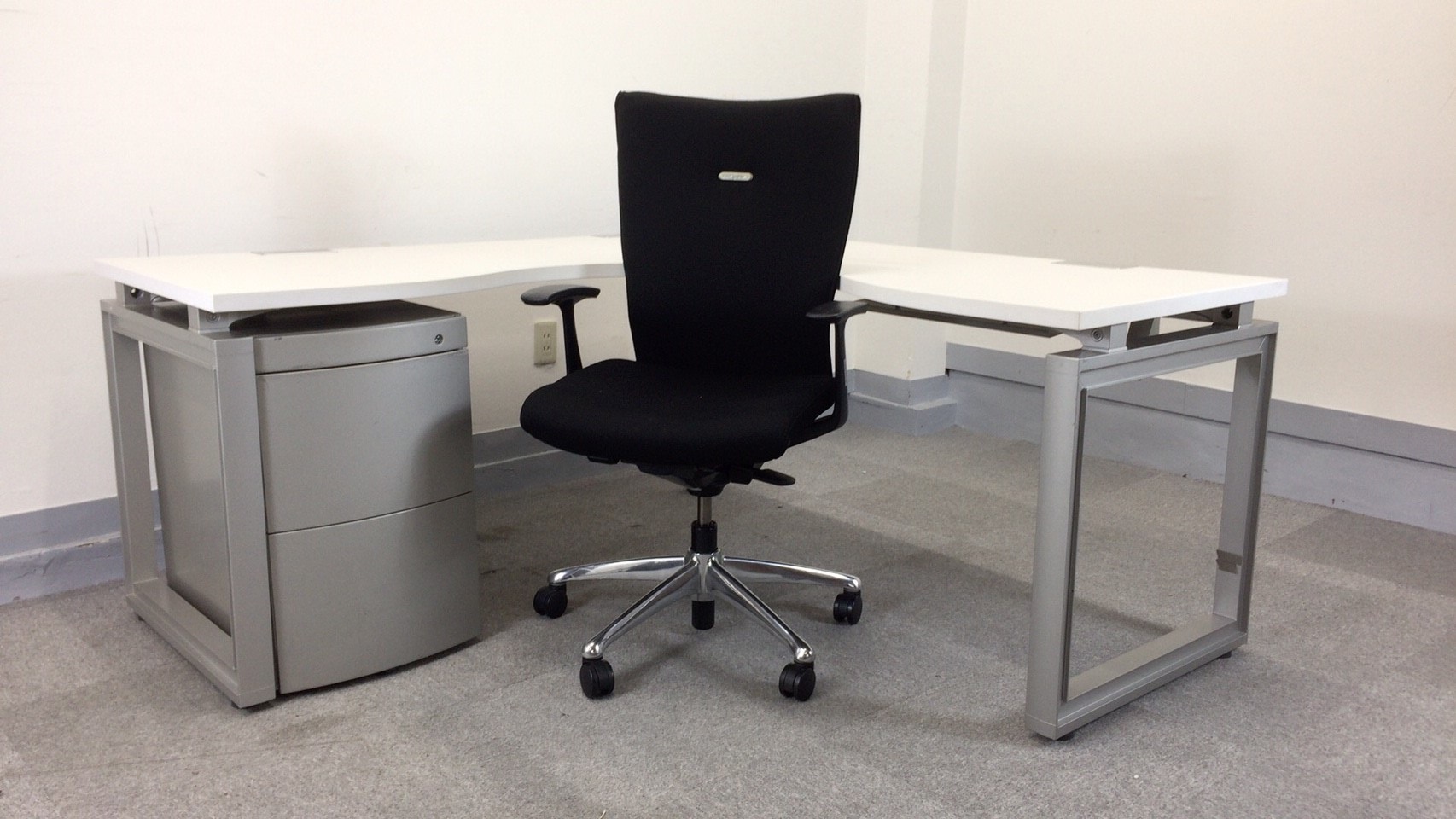 【KS】[マネジメントデスク&チェアセット]イトーキ L字デスク、3段ワゴン&岡村製作所 フィーゴチェア ハイバック サイドファスナー デザインアーム- 茨城南店