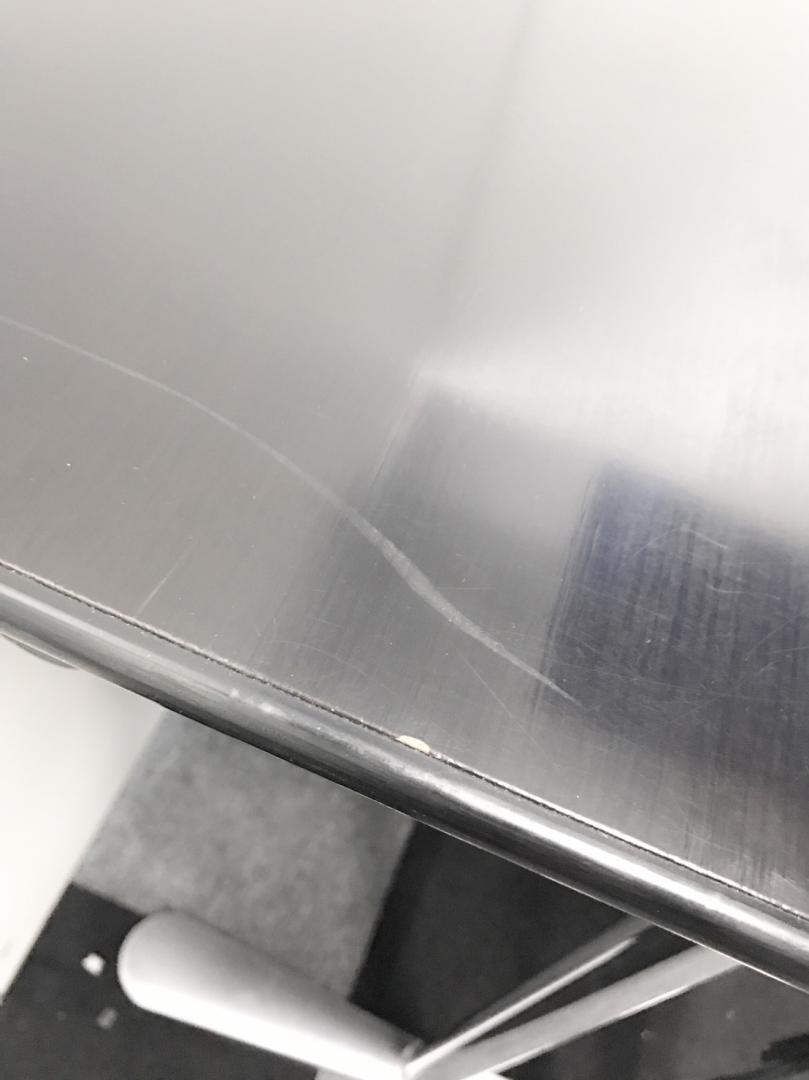 - 壊れている天板歪み、アジャスター無し、キャスター使用不可のようにそのテーブルの本来の効用を果たすための機能に不具合がある。