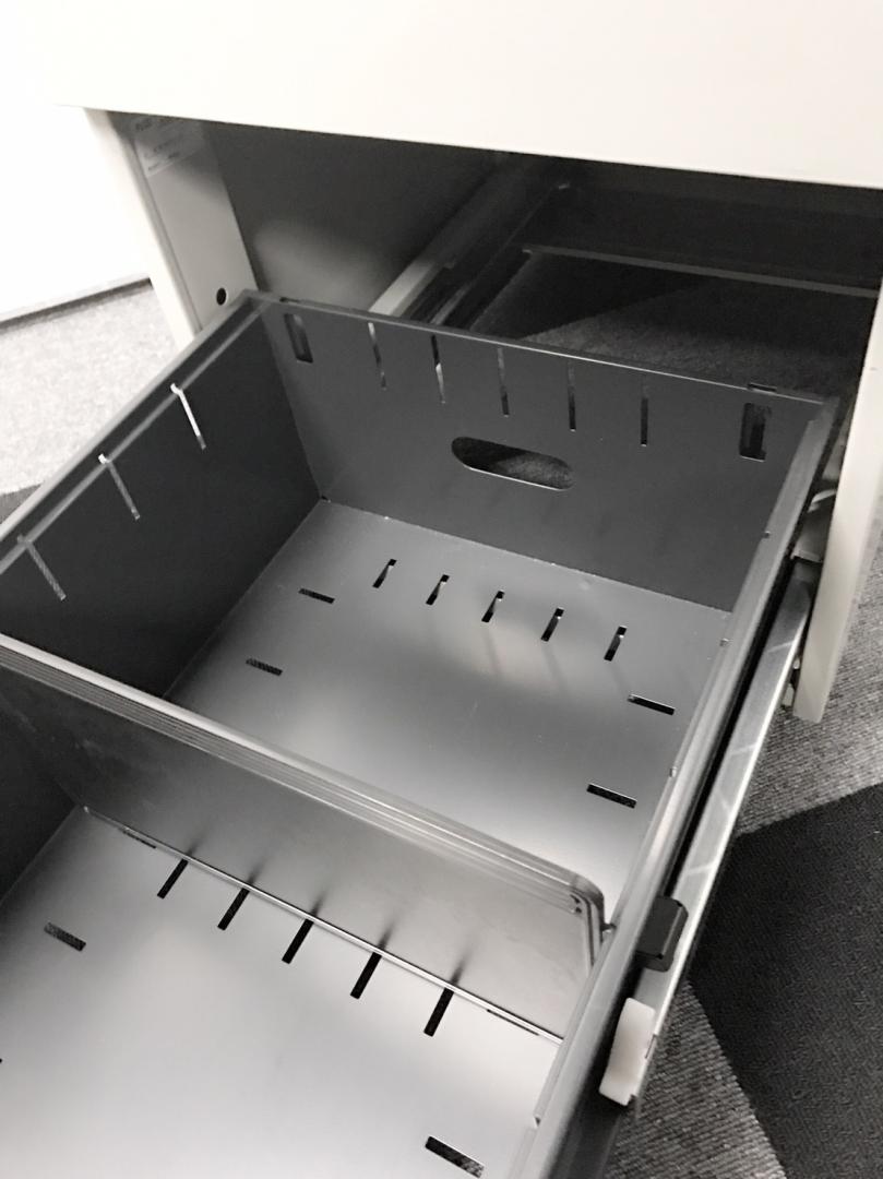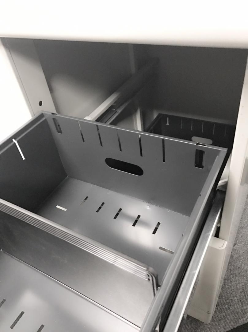 - 一部不具合ありその脇机・ワゴンの本来の効用を果たすための機能以外の一部が使用不可な状態。(例、引出が開閉しづらい、 キャスターロック機能使用不可、ラッチ不良 等がある。)