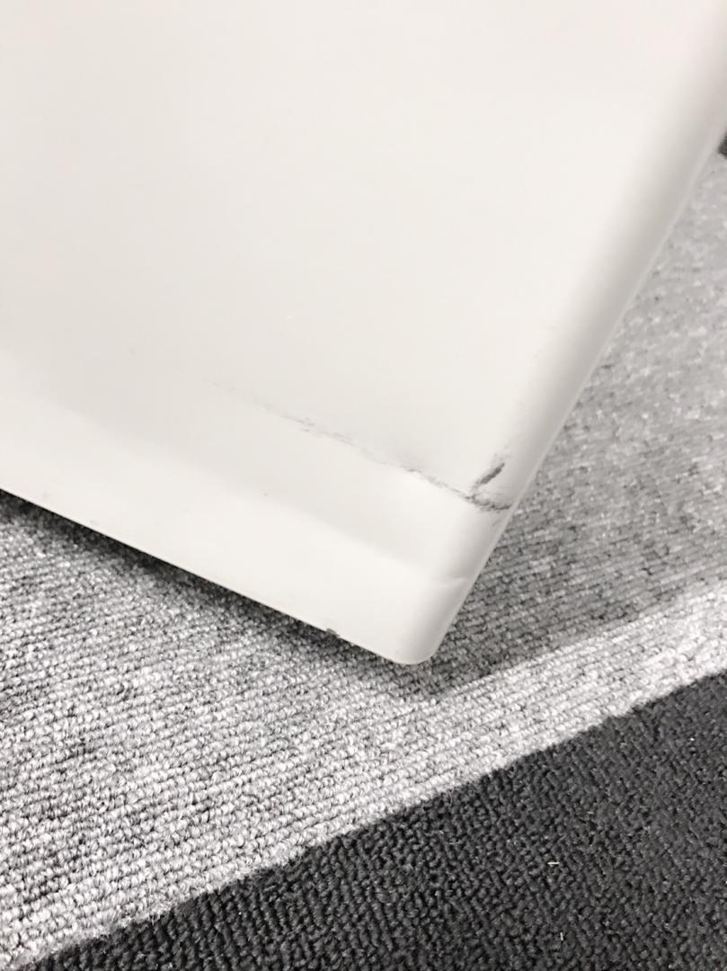 - 目立つ箇所あり傷・凹みが多数、深い傷・凹みが一部ある。(例、天板、正面、背後、サイド部分にある。)