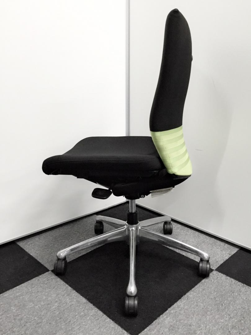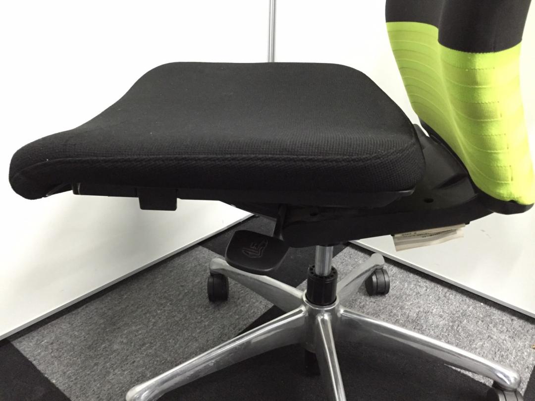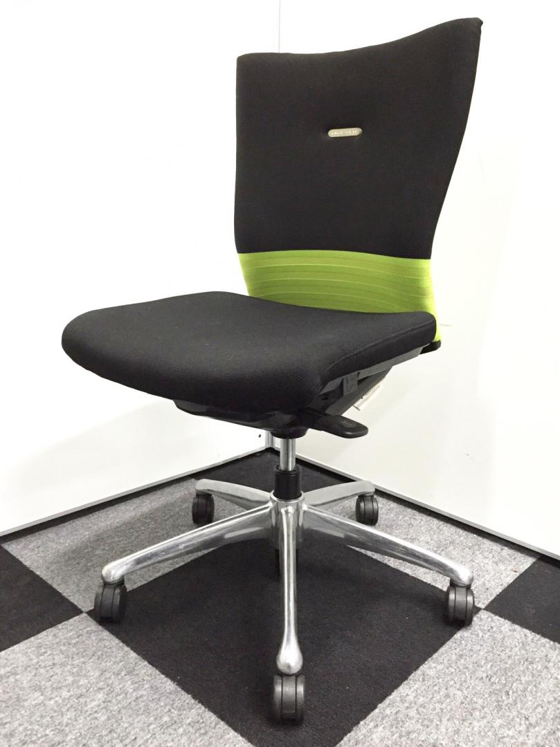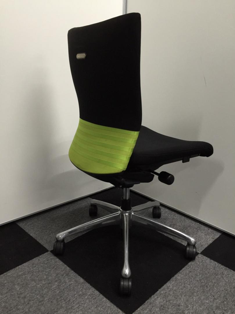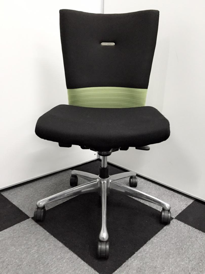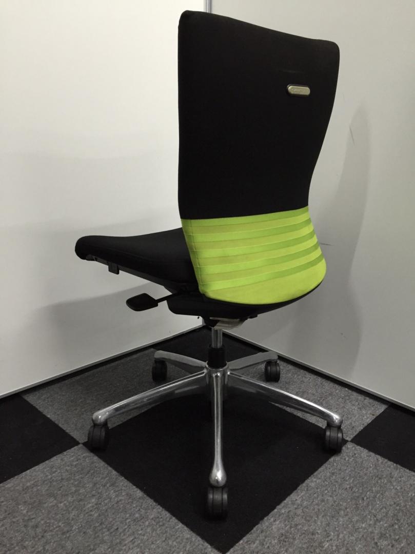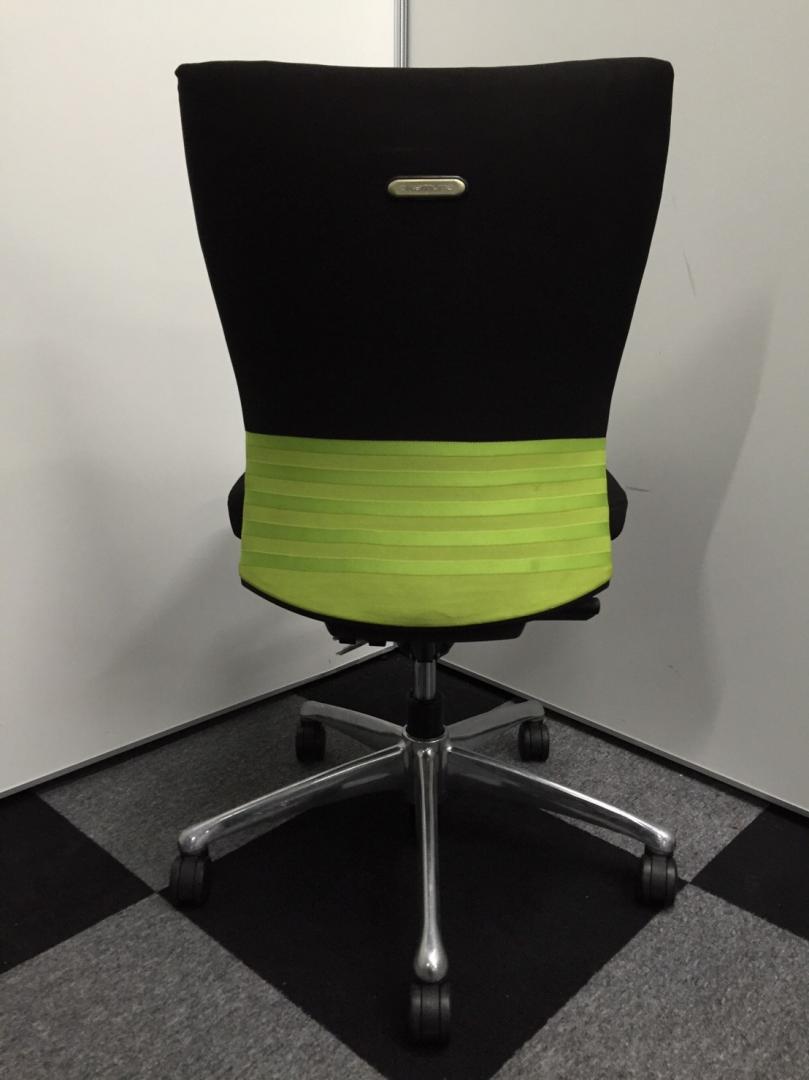 オカムラ製 フィーゴ シームレスタイプ ブラック×ライトグリーン【機能とデザインを兼ね備えたチェア】肘外し