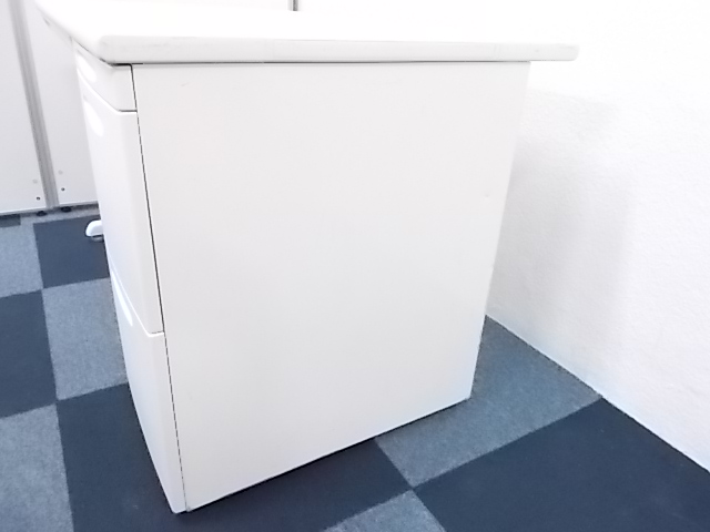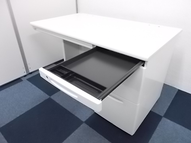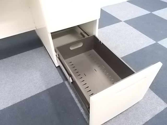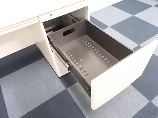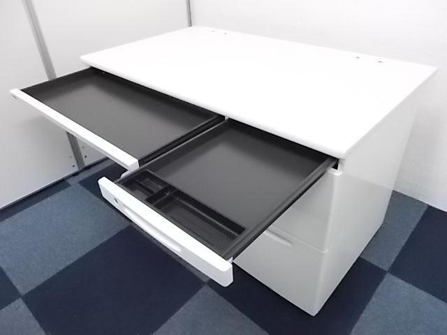 - 袖机のワゴンは、最下段がロング引出しになっており、従来より収納力120%アップ。