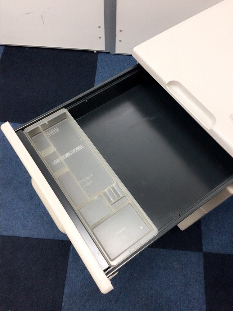 - 一部不具合ありその脇机・ワゴンの本来の効用を果たすための機能以外の一部が使用不可な状態。(例、引出が開閉しづらい、 キャスターロック機能使用不可、ラッチ不良 等がある。)