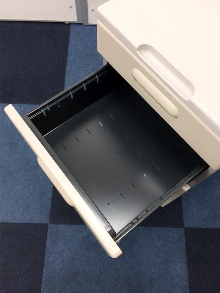 - 多数不具合ありその脇机・ワゴンの本来の効用を果たすための機能以外の多数が使用不可な状態。(例、引出が開閉しづらい、 キャスターロック機能使用不可、ラッチ不良 等がある。)