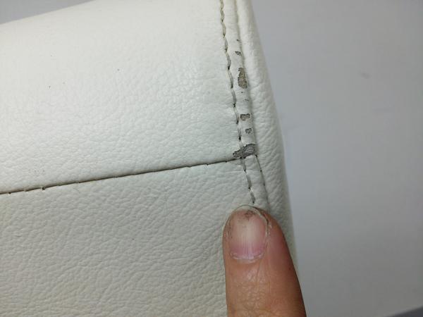 - あり黄ばみ・変色が広い範囲にうっすらある、または濃い黄ばみ・変色が一部ある。(例、座面・背もたれ、脚部等にある。)