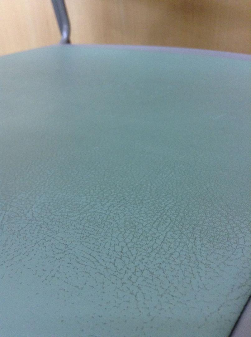 - あり黄ばみ・変色が広い範囲にうっすらある、または濃い黄ばみ・変色が一部ある。(例、座面・背もたれ、脚部等にある。)