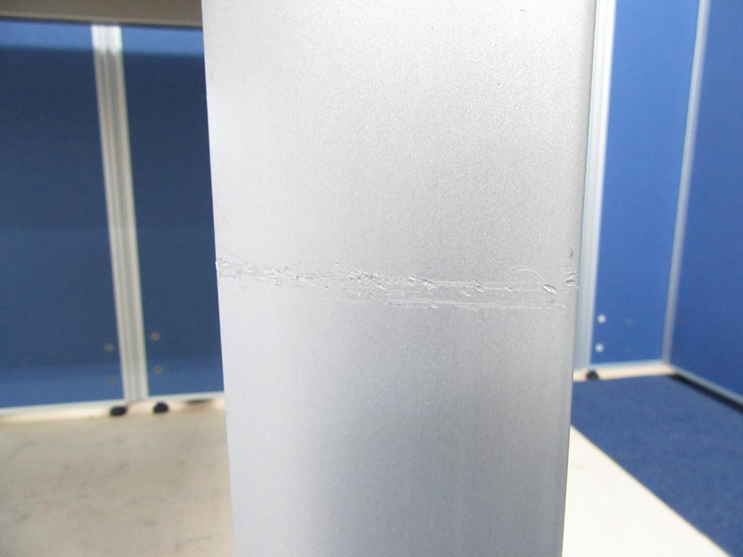 - 一部不具合あり天板歪み、アジャスター無し、キャスター使用不可ようなそのテーブルの本来の効用を果たすための機能以外の一部が使用不可な状態。(例、キャスターロッ ク機能使用不可、棚板無し等がある。)