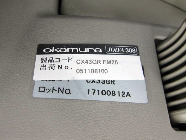 【中古】 CXチェア CX43GR FM26 オカムラ/okamura 肘付ローバックチェア 188962