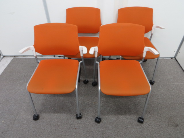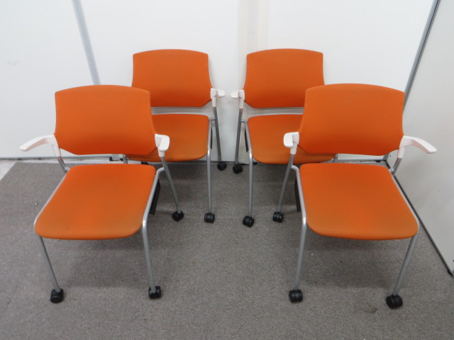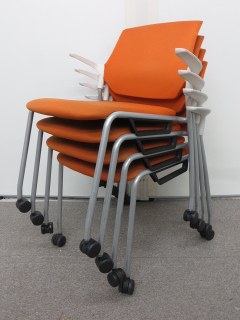 【限定1セット!】明るいカラーのスタッキングチェアが入荷!キャスター付きなので楽々移動可能!使わないときは重ねて省スペースです。- 在庫数