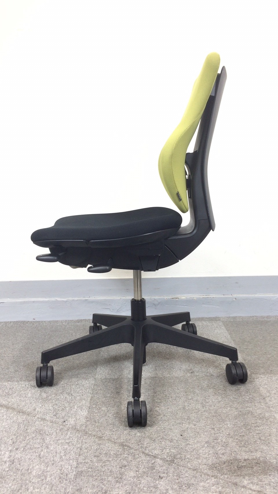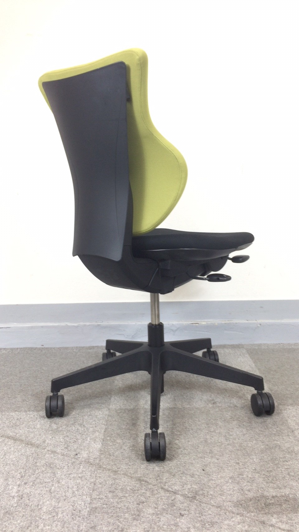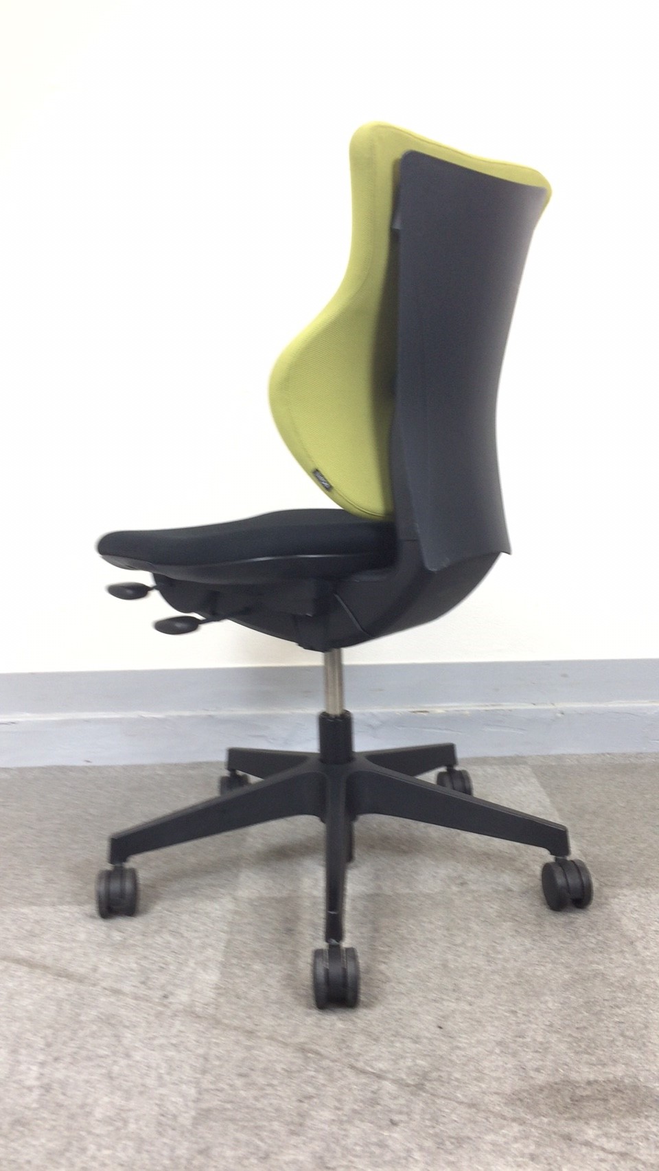 - 女性の作業姿勢に多く見られる2つの姿勢を、美しく支える背もたれ形状です。後傾しても背のラインを崩しません。