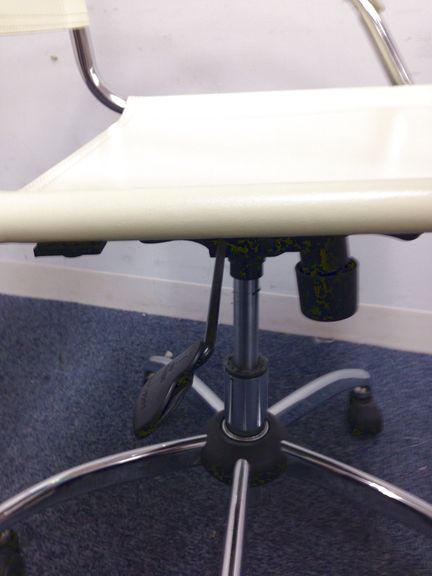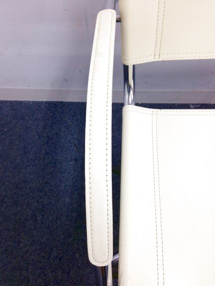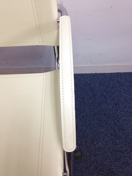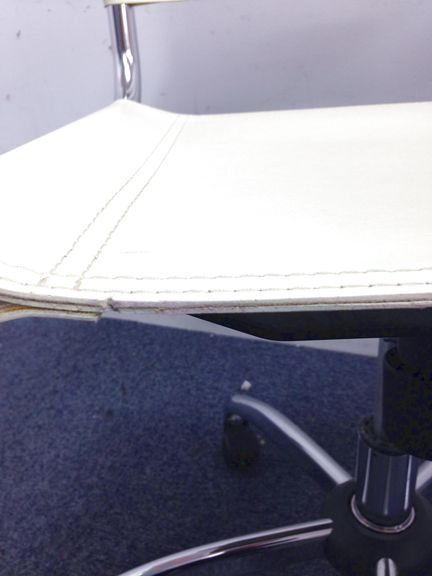 - かなり強い濃い黄ばみ・変色が商品全体にある。(例、座面・背もたれ、脚部等にある。)