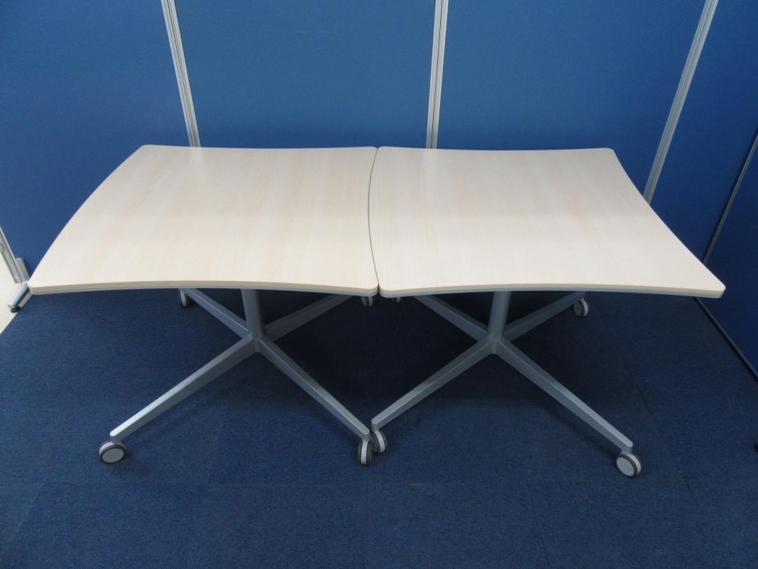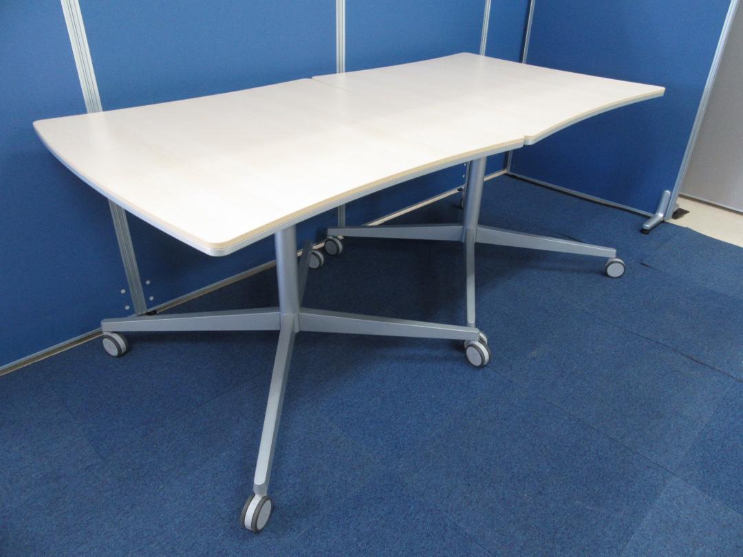 [2台セット!!]岡村製作所 ミーティングテーブル ナチュラル■人数・内容に合わせてテーブルをセッティング!!※キャスターロック機能無しタイプ- 足立・葛飾店