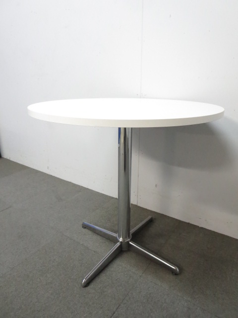 ちょっとした打合せに最適な丸型タイプ!■ラウンドテーブル ホワイト ■W750mmサイズ- 川崎店