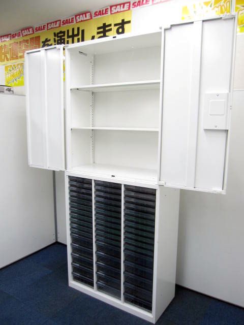 【激レア】レクトライン 書庫セット 上段:両開き/下段:多段トレー- 品川・三田店