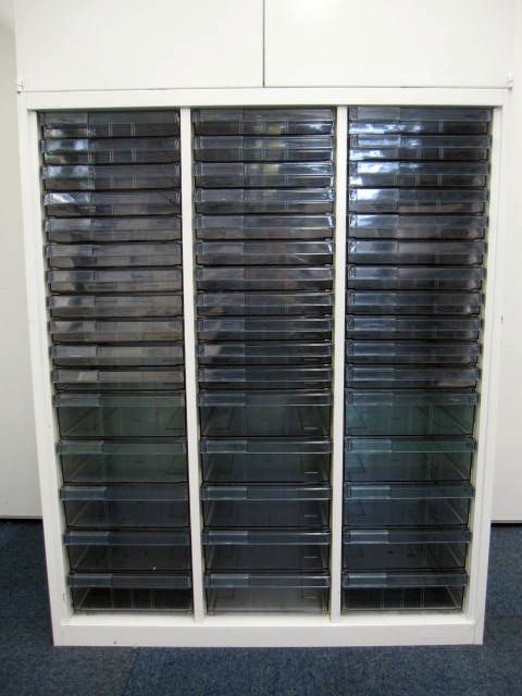 めったに入荷しない、レクトラインの両開きトレー書庫のセット(奥行400mm)が1セットのみ入荷いたしました。