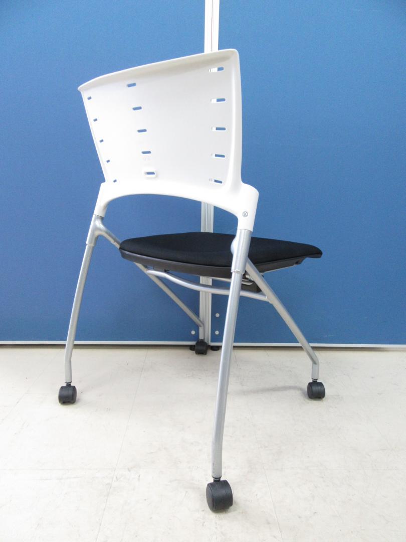 [1脚限定の特別価格にて!!]イトーキ製 マノスチェア ブラック×オフホワイト■畳んで収納可能!!軽量で会議後の後片付けがスムーズです!![ネスタブル]- 足立・葛飾店