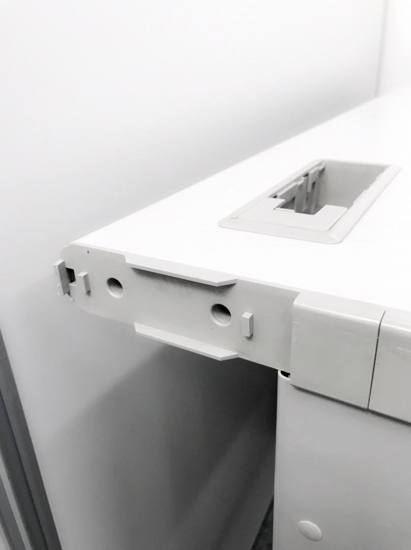 - 天板にコードホールが2ヵ所あり、レイアウト自在です。天板と幕版の間に30mmのすき間があり、対向配線も容易です。