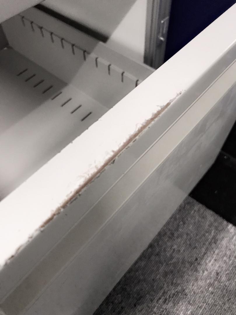 - シンプルながらも使いやすい工夫があります。ロックは、一度の施錠ですべての引出しの鍵がかかるオールロック機構。