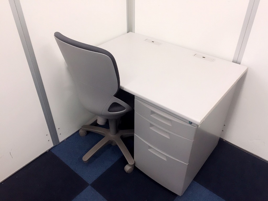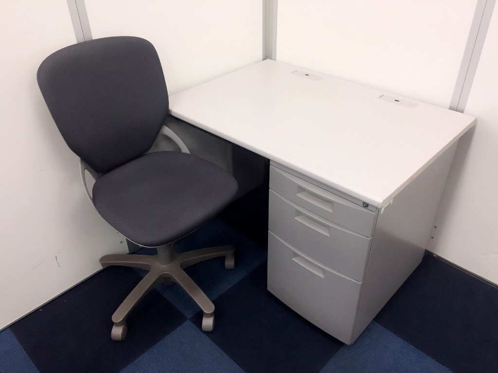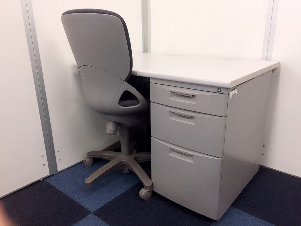 【イトーキ・グレーセット】袖付きのデスクですので収納もばっちり!チェアとのセットですので、急な増員にもこのセットで即対応出来ます!【汚れが目立ち難くおススメ】- 在庫数