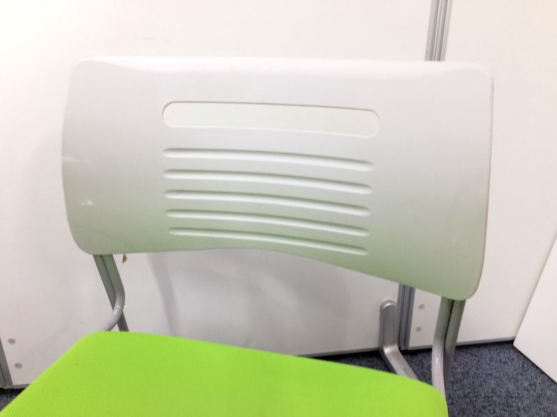 ライトグリーン色!!重ねて置けるので邪魔にもならならい!!スタッキングチェアー- 名古屋本店