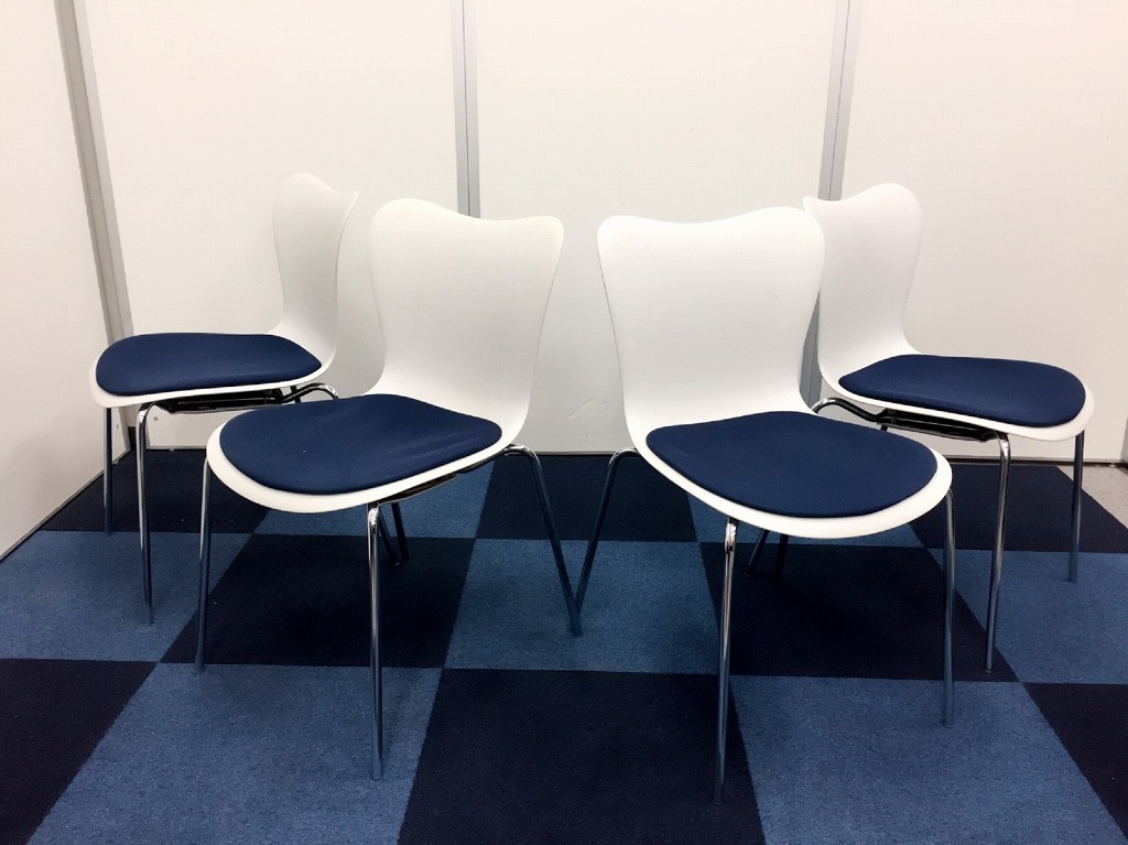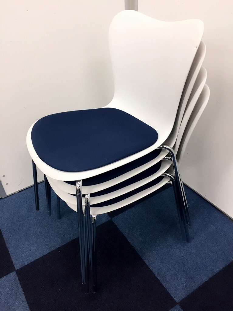 【ホワイトカラーのスタッキングチェア】お洒落なスタッキングチェアをセット価格でご提案!この機会にホワイト色のオフィス什器は如何でしょう!【休憩室、会議室におススメ】- 在庫数