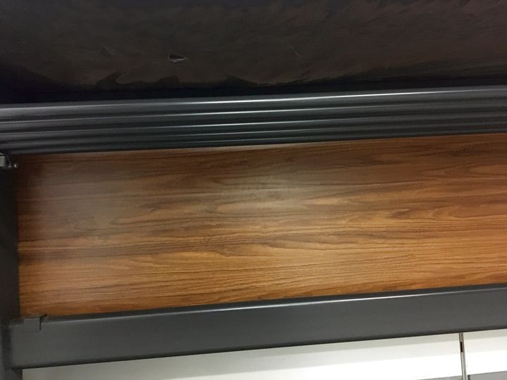 - かなり強い濃い黄ばみ・変色が商品全体にある。(例、天板、幕板、棚板、サイド部分、脚部等にある。)