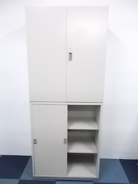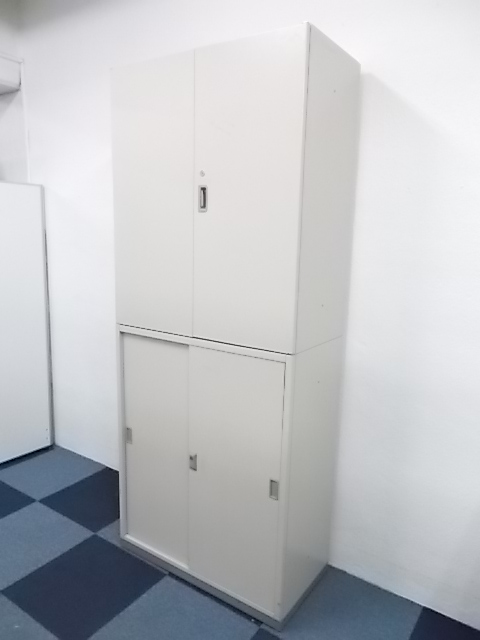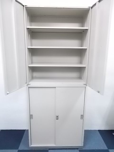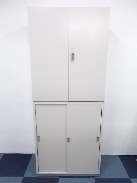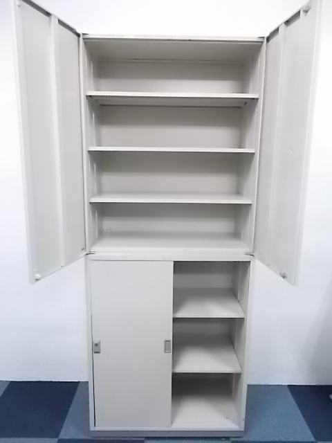【1台入荷】イナバ製 書庫セット下置(スチール引違) 上置き:両開き ニューグレー- 在庫数