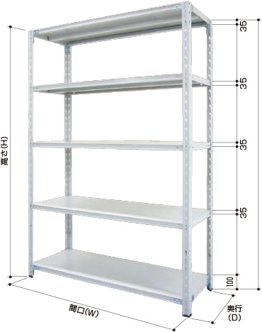 軽中量棚(単体) BL-46S5 ボルトレスで種類も豊富!! 耐荷重:段150kg- マテハン本舗