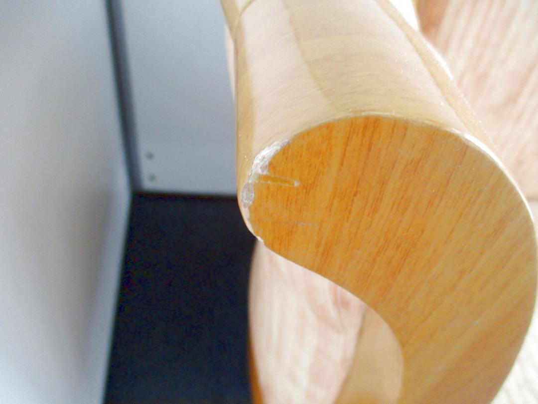 - あり黄ばみ・変色が広い範囲にうっすらある、または濃い黄ばみ・変色が一部ある。(例:三人用ソファ、二人用ソファ、一人用ソファの場合、背もたれ、肘かけ、座面等、 センターテーブルの場合、天板、脚にある。)