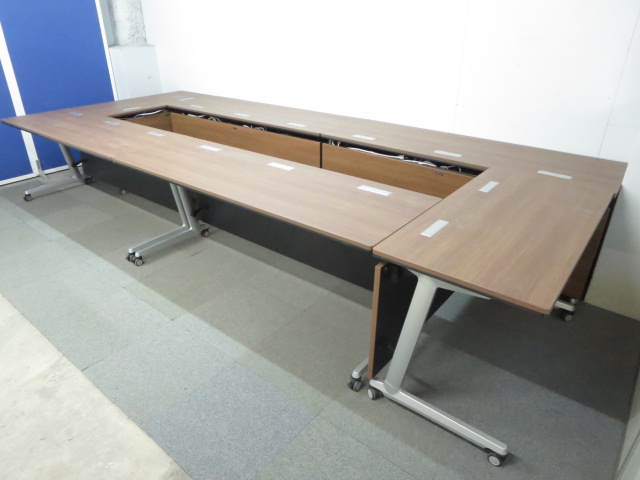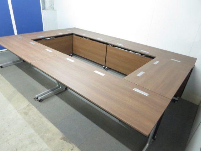 【オフィシャルな空間にふさわしい高級感!】■オカムラ製 ユニット会議テーブル6台セット ■ダークブラウン【配線孔付】■エレガスタ ユニットタイプ【Okamura Elegasta】- 川崎店