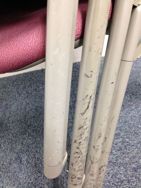 - かなり強い濃い黄ばみ・変色が商品全体にある。(例、座面・背もたれ、脚部等にある。)