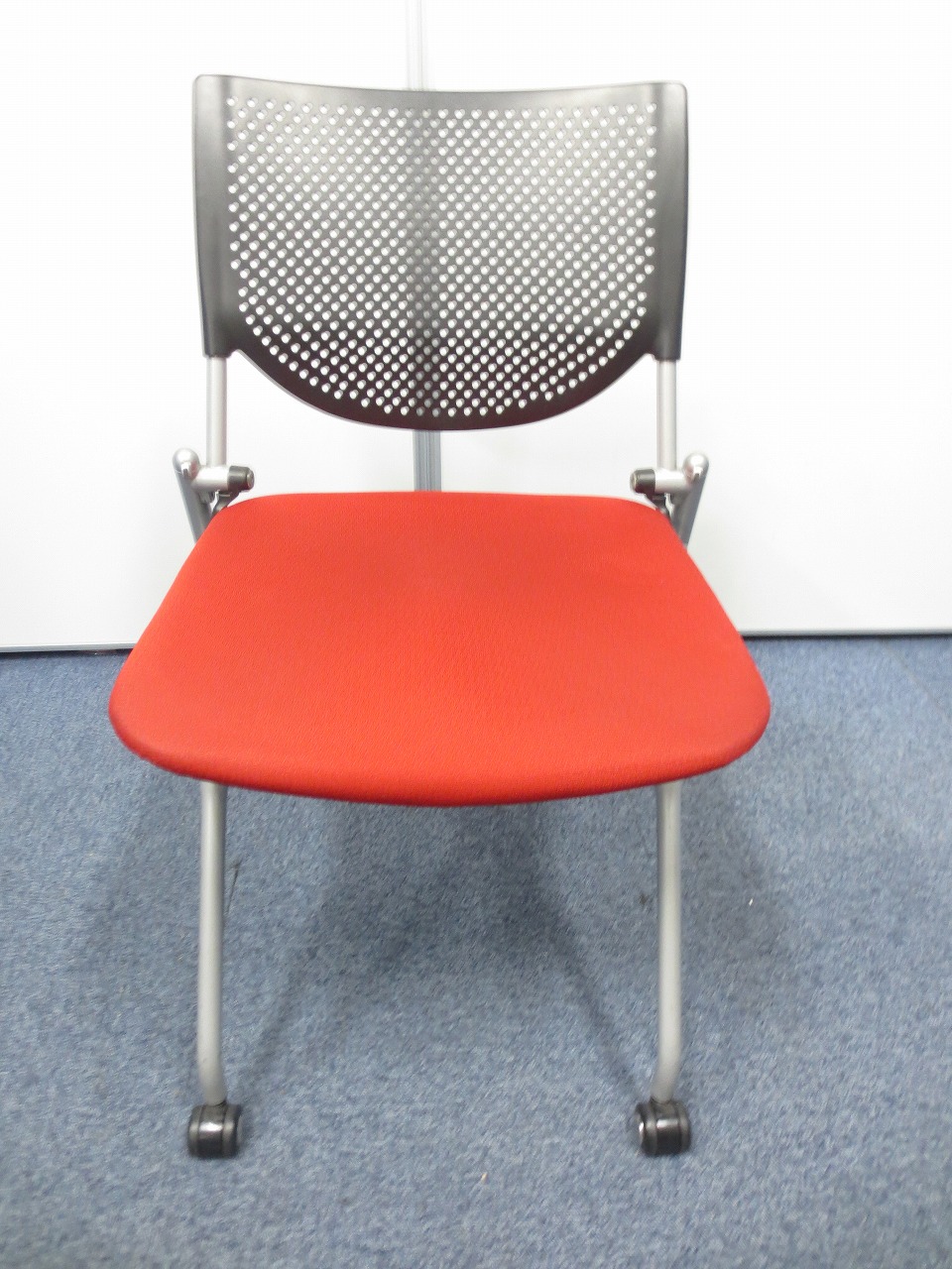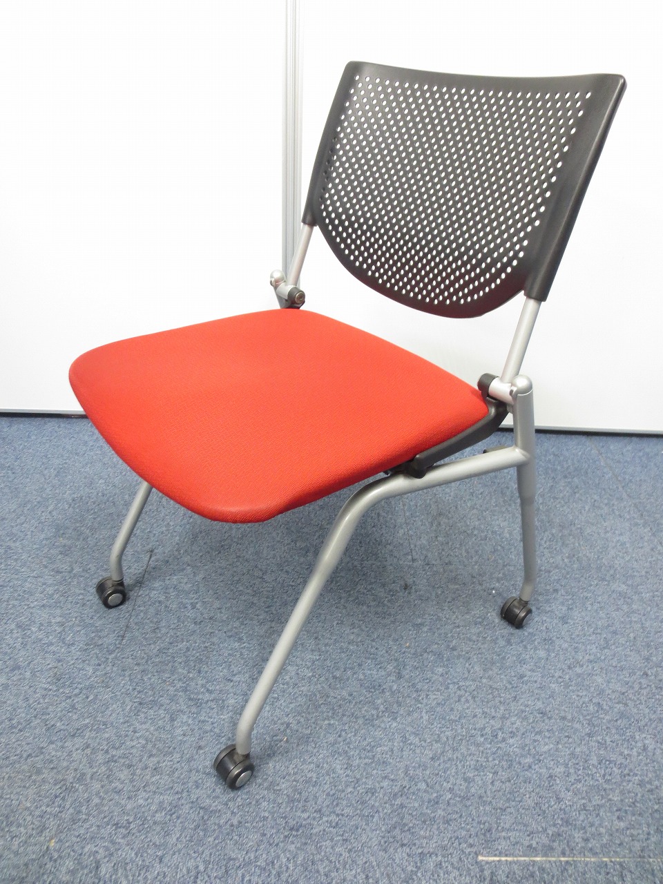 【座面が目立つ赤仕様!】国内メーカー製の定番ネスティングチェア!座面を畳んでの収納が可能でスペース効率◎!サーキュラーバリューCO2削減量の算出について