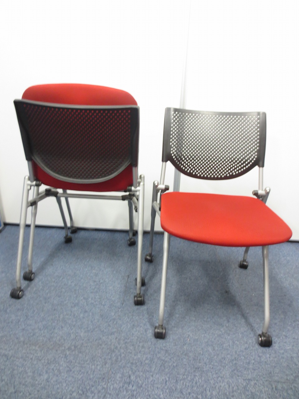 赤の派手な見た目のスタッキングチェアの3脚セットです!